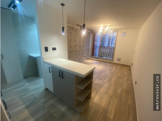 Apartamento para estrenar en un piso catorce con vista interna con ascensor, dos habitaciones con closet, cocina integral con barra americana, un baño, zona de ropas con calentador a gas e iluminación inteligente.